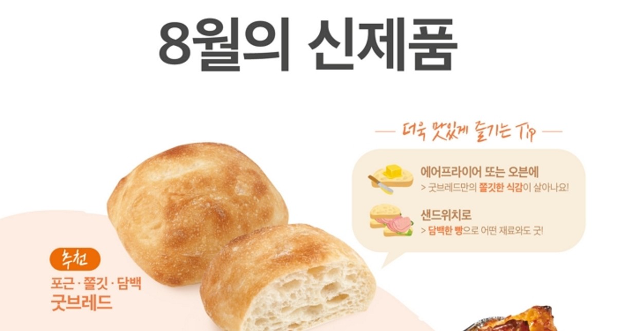 [인사이트] 천소진 기자 = 뚜레쥬르가 포근하고 쫄깃한 '굿브레드' 등 8월 신제품 3종을 출시했다고 밝혔다.