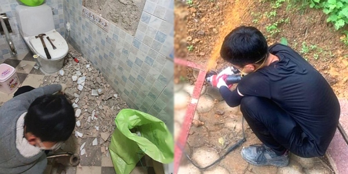 함께 올라온 사진에는 용접과 화장실 공사, 도로 벽돌 공사 등을 하고 있는 A씨의 모습이 담겼다.