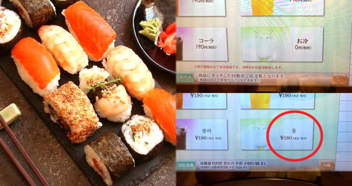 [인사이트] 김다솜 기자 = 일본 초밥집에서 한국어 메뉴로 물을 주문하면 2,000원을 내야 한다는 사연이 전해졌다.