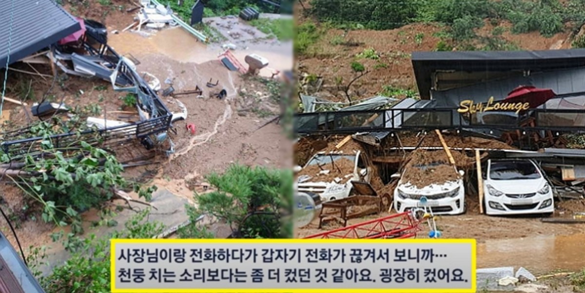 이 사고로 인해 2층 높이의 펜션은 순식간에 폭삭 주저앉았고 펜션 주변은 순식간에 아수라장이 됐다.