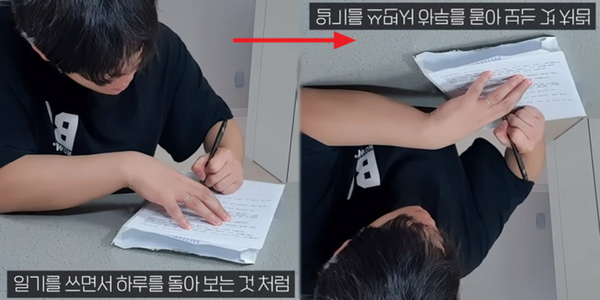 해당 영상은 누리꾼들이 아랍어라고 지적한 사과문을 작성하는 모습이 상하 반전으로 송출되는 영상이다.