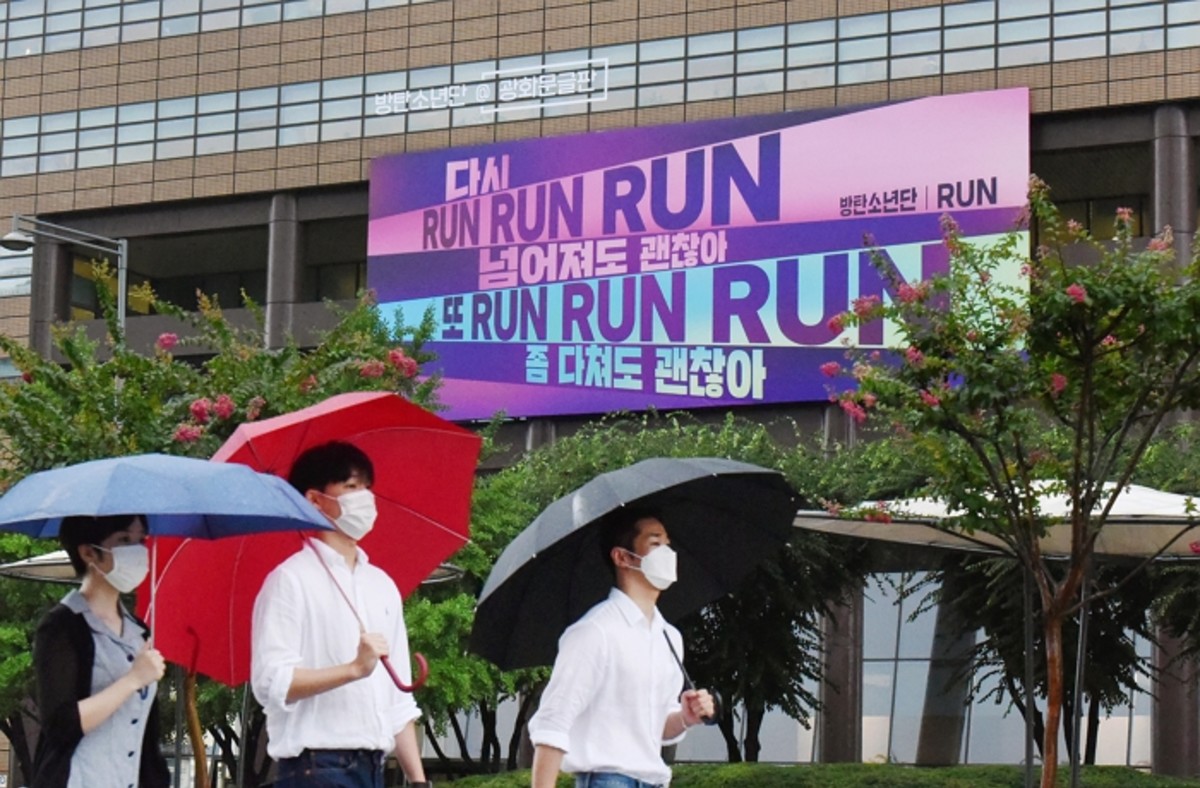앞으로 한 달간 방탄소년단의 노래 가사를 활용한 응원 메시지가 '광화문글판'을 수놓게 된다.