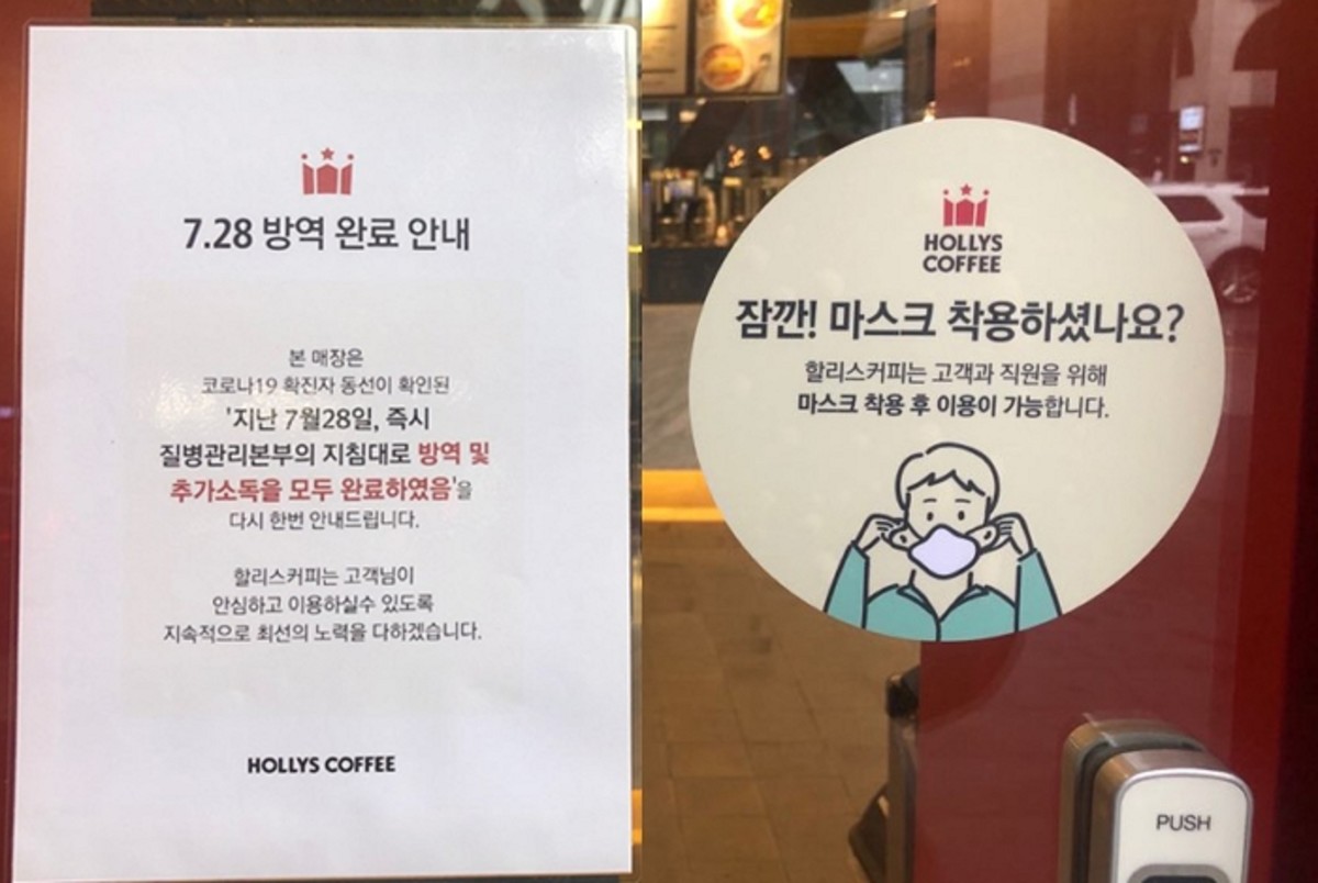 당시 직원들은 규정대로 마스크와 라텍스 장갑을 착용해 아무런 이상 증상이 없다. 방역 완료, 마스크 착용 의무화, 거리 두기 강화 조치를 취한 할리스커피 선릉역점은 정상 영업 중이다.