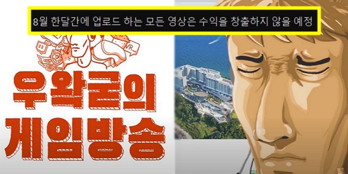 그는 "지금 시점부로 우왁굳의 게임방송 채널에 8월 한 달간 업로드하는 모든 영상은 수익을 창출하지 않겠다"고 밝혔다. 본인이 올리는 모든 영상에 중간광고를 포함한 모든 광고를 일절 넣지 않겠다는 것이다.