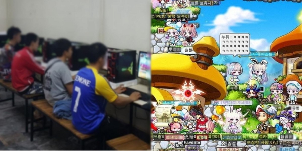 게시글에 첨부된 사진에는 동남아 청년들이 일자로 나란히 앉아 한국 게임 '메이플 스토리'를 하는 모습이 담겼다.