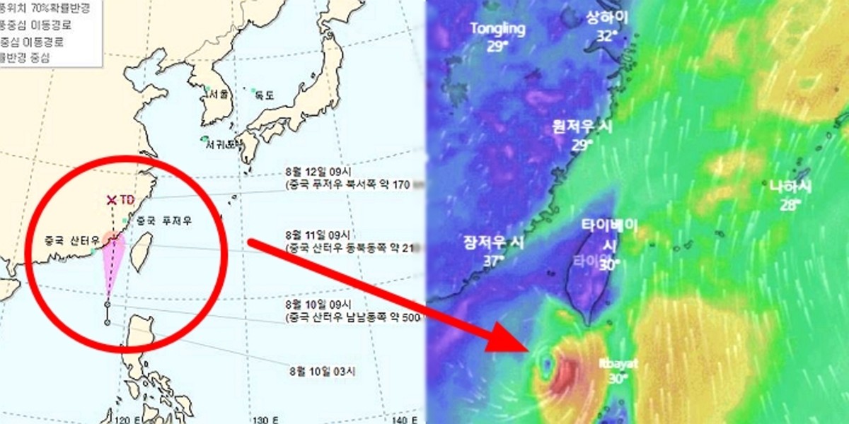 현재 필리핀에서 발생한 제12호 열대저압부가 중국 쪽으로 북상하고 있기 때문이다. 기상청은 이 열대저압부가 제6호 태풍인 '메칼라'로 발달할 것으로 예상하고 있다.