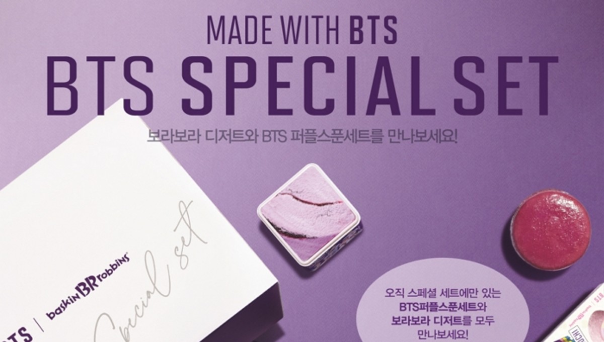 배스킨라빈스를 상징하는 '핑크 스푼'을 보라색으로 탈바꿈한 'BTS 퍼플 스푼세트(방탄소년단 멤버들의 모습을 담은 '포토카드' 포함)' 등도 함께 담겨 알찬 구성을 자랑한다.