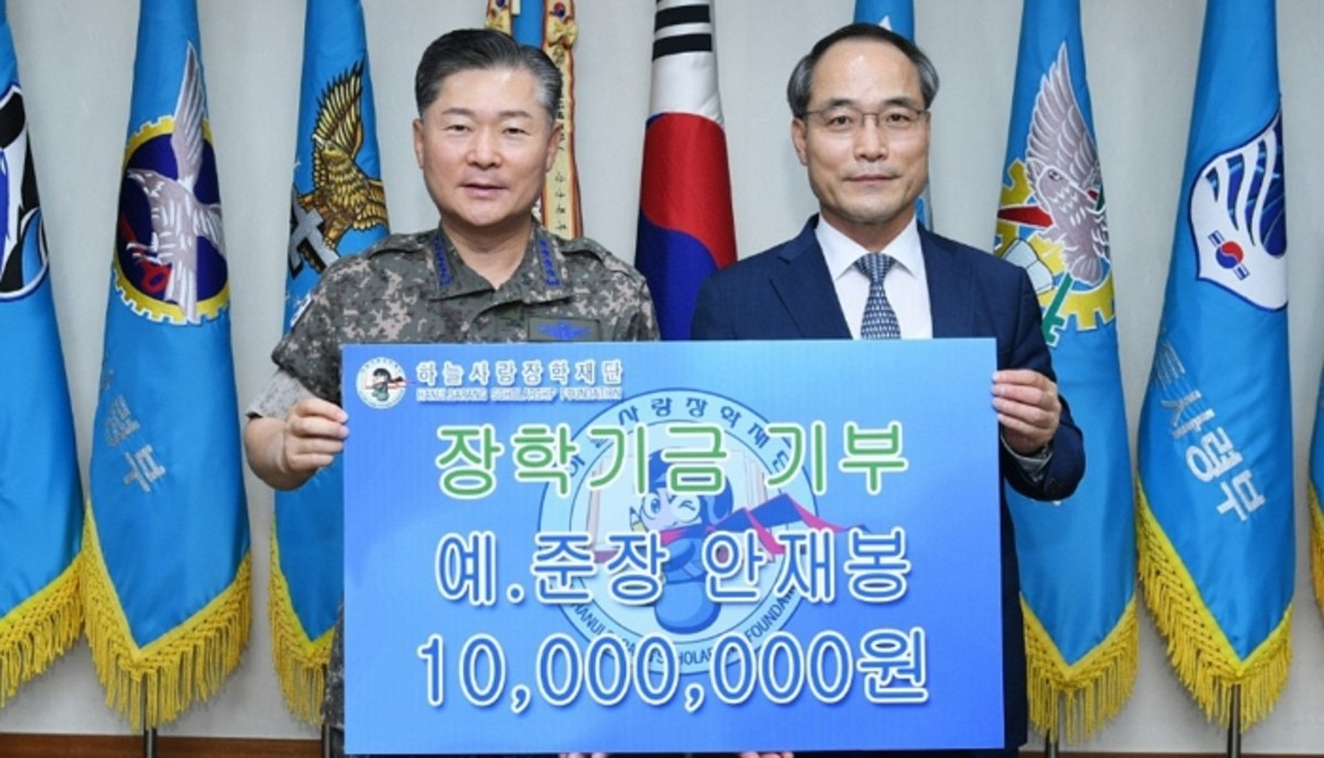 한편, '하늘사랑 장학 재단'은 故 박광수 중위(공사 29기) 부모가 28년여간 모은 유족연금 1억 원과 조종사 2,700여 명이 자율적으로 모은 2억여 원을 기반으로 2010년 설립돼 현재까지 매년 순직 조종사 유자녀에게 장학금을 지급해 오고 있다.