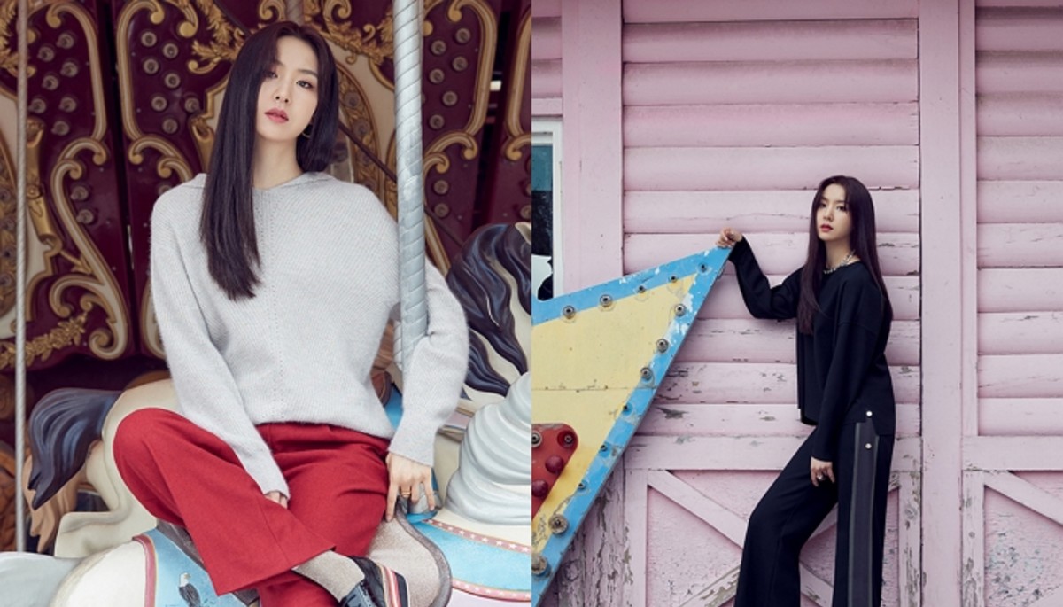 섬세한 컬러감의 니트코트와 편안한 착용감을 자랑하는 상하의 셋업을 착용하며 다채로운 가을 여성 패션을 제안했다.