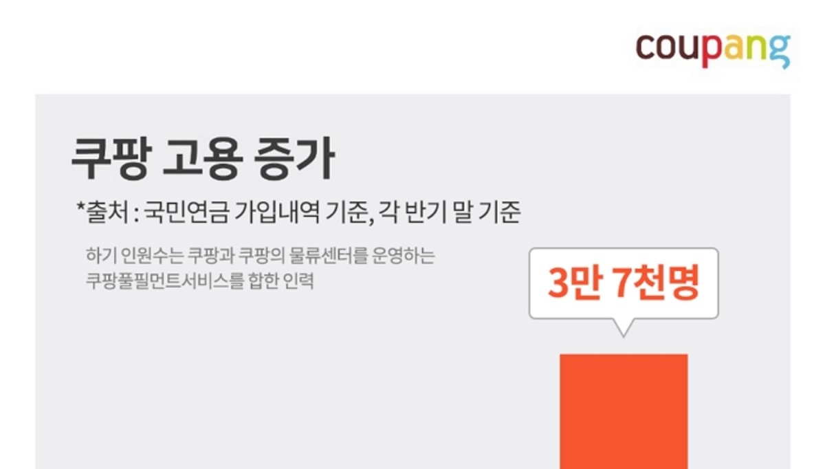 국내 유통기업 44개사에서 같은 기간 2,519명의 일자리가 사라진 반면 쿠팡은 올해 들어 유통업계 전체 감소 수의 약 5배 일자리를 만들어 냈다.