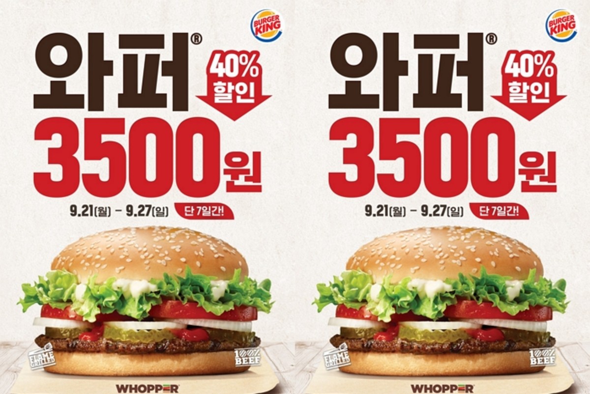 [인사이트] 천소진 기자 = 버거킹이 가을을 맞이해 오는 27일까지 매장 방문 고객들을 대상으로 와퍼 및 불고기와퍼 단품을 3,500원에 판매하는 프로모션을 실시한다고 밝혔다.