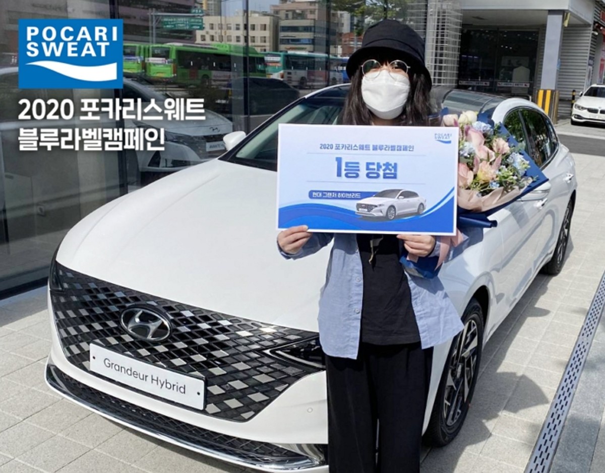 [인사이트] 천소진 기자 = 동아오츠카 포카리스웨트는 지난 23일 '2020 포카리스웨트 블루라벨 캠페인'의 1등 당첨자에게 2020 현대 그랜저 하이브리드 상품을 전달했다고 24일 밝혔다.
