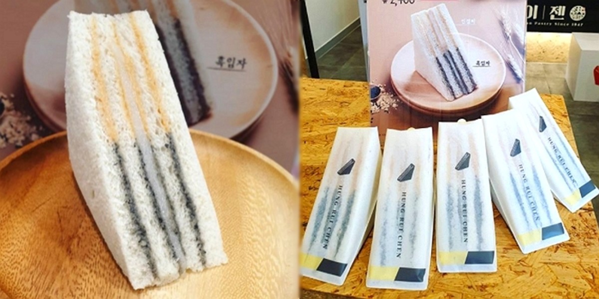 샌드위치 모습을 자세히 보면 빵 사이에 인절미, 흑임자 크림이 정확히 반씩 들어가 보기만 해도 고소함이 풍긴다.
