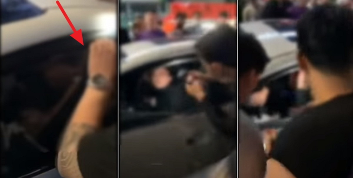 그가 창문을 찢어버리자마자 수많은 남성들이 달려와 운전자를 응징하려 손을 뻗었다.