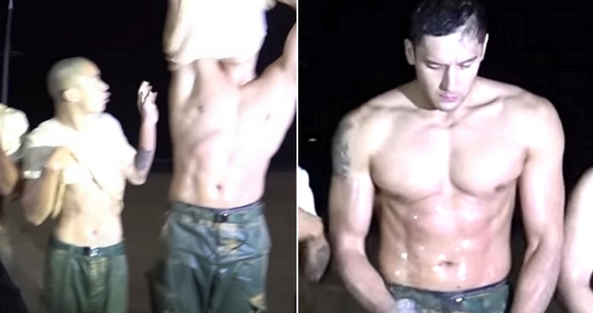 고된 훈련 후 교관이 땀을 흘리는 참가자들을 위해 물을 뿌려주던 중 상의를 탈의하는 줄리엔강의 모습이 화면에 잡혔다.