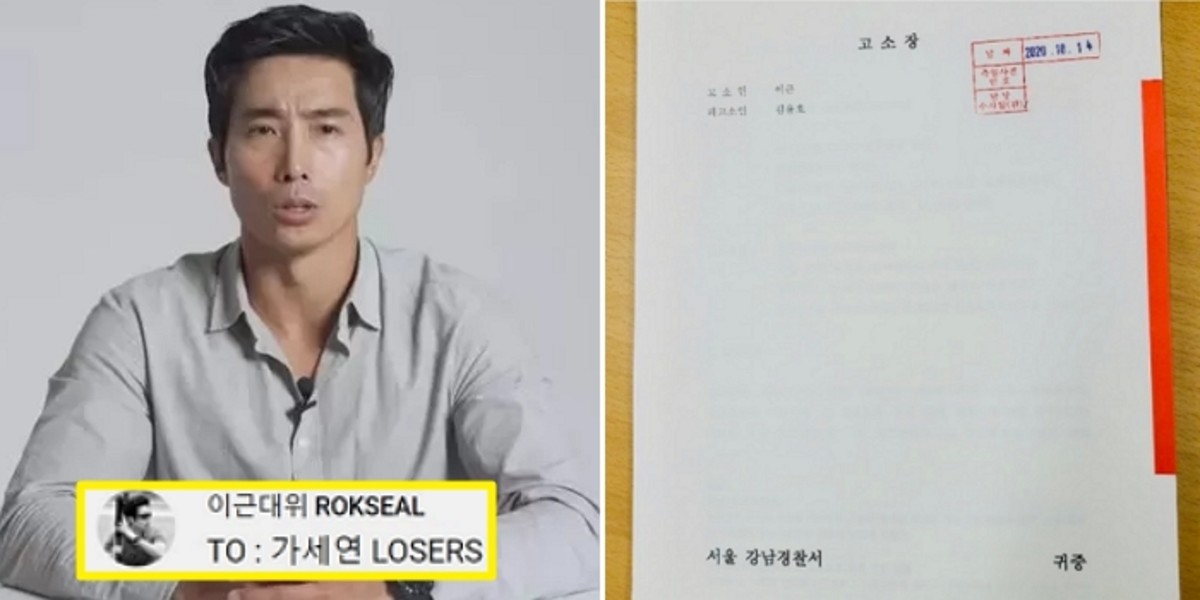 이근 대위는 14일 자신의 공식 유튜브 채널 '이근대위 ROKSEAL' 커뮤니티에 "가세연(가로세로연구소) LOSERS(패배자들)"라며 고소장을 공개했다.