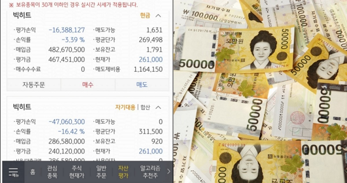 그가 빅히트 주식을 사들이는 데 쓴 금액은 7억 6,925만 500원이다. 하지만 주식은 그의 바람과 달리 계속해서 떨어졌다.