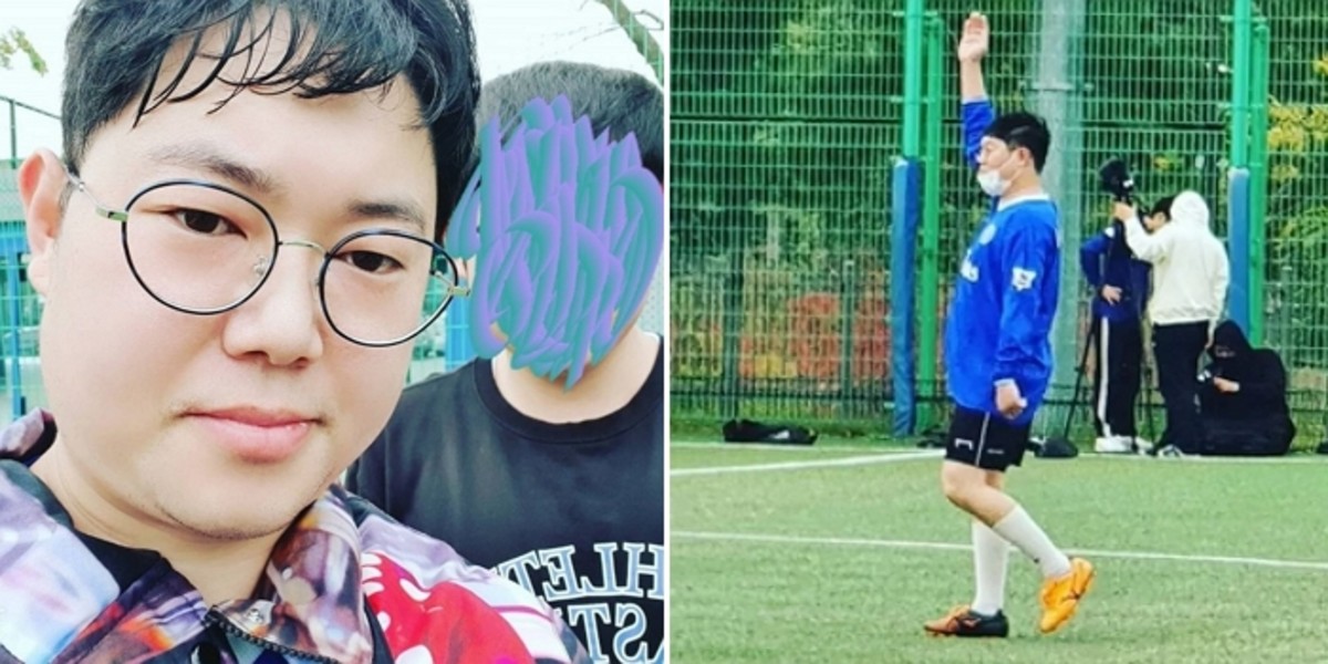 게시글에는 팬들과 잔디 구장에서 축구 경기를 하고있는 감스트의 사진이 담겼다.
