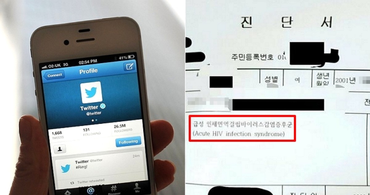 게시된 사진에는 진단서가 담겼는데 병명은 '급성 인체면역결핍바이러스감염증후군(Acute HIV Infection Syndrome)'이다.