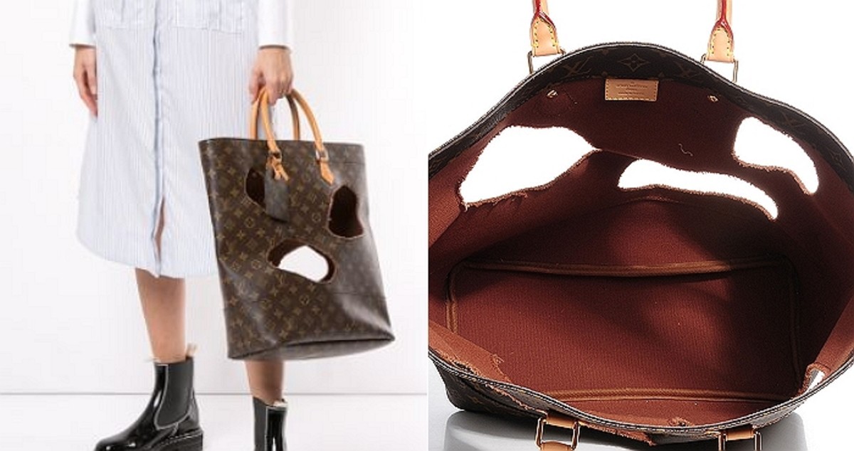 그 주인공은 바로 전면에 구멍이 송송 뚫린 독특한 디자인을 자랑하는 '루이비통 X 꼼 데 가르송 모노그램 토트백'이다.