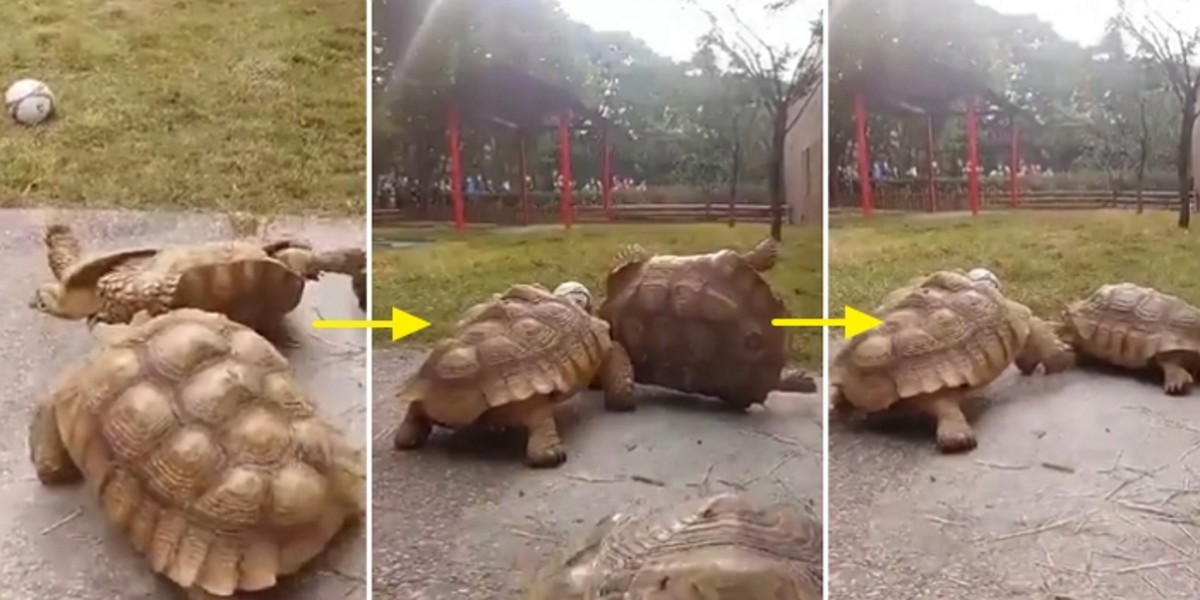 [인사이트] 박아영 기자 = 서울대공원에 사는 멸종위기종 설카타육지거북이 몸이 뒤집힌 친구 거북이를 돕는 장면이 포착됐다.