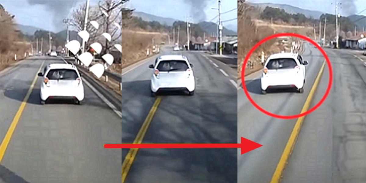 우측에는 공간이 충분히 있었는데도 소형차는 순간 판단을 잘못한 탓인지 굳이 중앙선을 침범해 왼쪽으로 길을 터줬다.