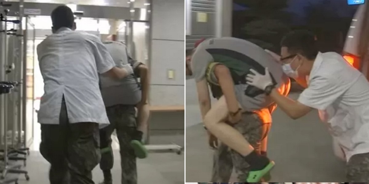 영상에는 생할관에서 훈련병이 갑자기 쓰러지자 조교가 바로 달려와 등에 업고 의무대까지 뛰어가는 장면이 나온다.