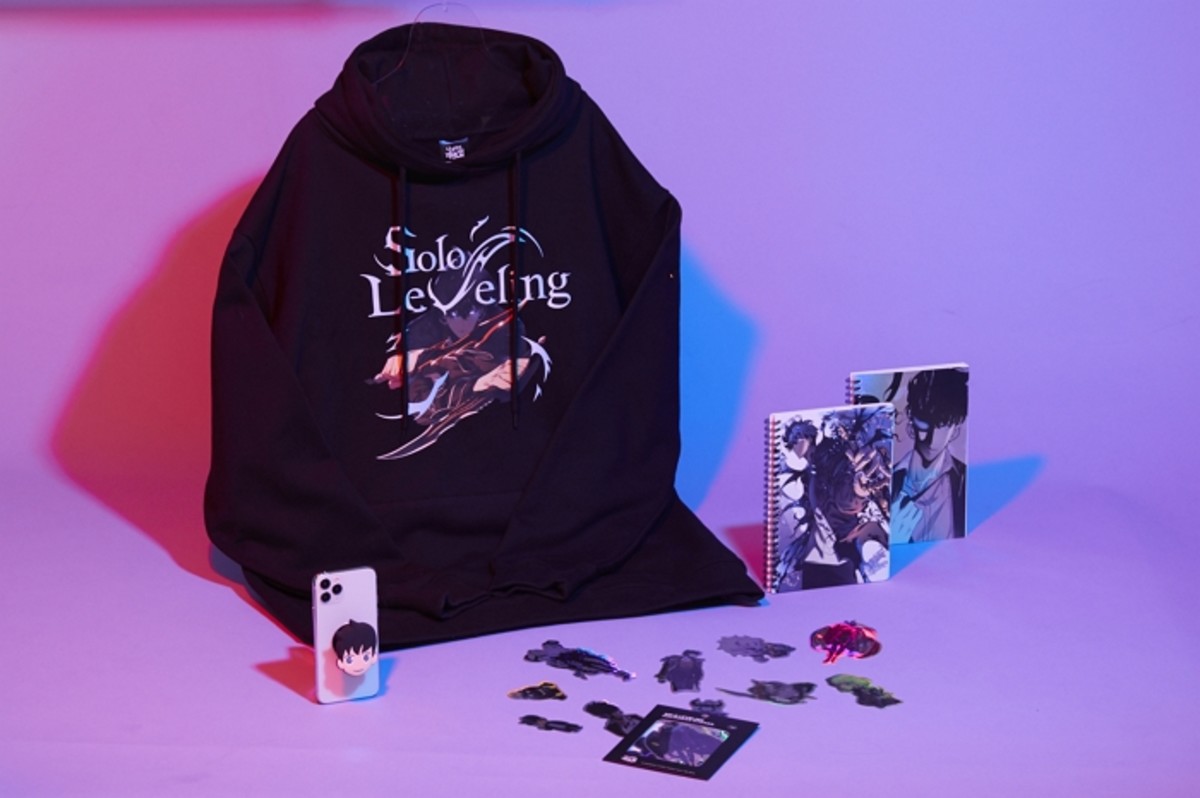 먼저, 주인공 성진우가 그려진 후드티셔츠와 노트 2종을 포함해 캐릭터를 간단하게 표현하는 SD 캐릭터 방식의 이미지를 구현한 폰그립, 또한 주인공 성진우를 비롯해 그림자병사 등 주요 등장인물들의 아트워크를 홀로그램 스티커로 제작한 스티커세트까지, 나 혼자만 레벨업의 팬들이라면 놓칠 수 없는 아이템으로 준비했다.