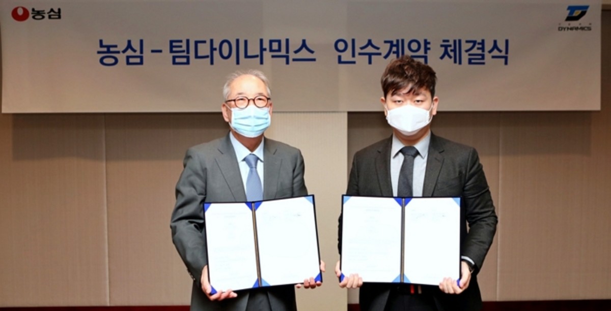 (좌)농심 박준 대표이사, (우)팀다이나믹스 오지환 대표이사 / 사진 제공 = 인사이트