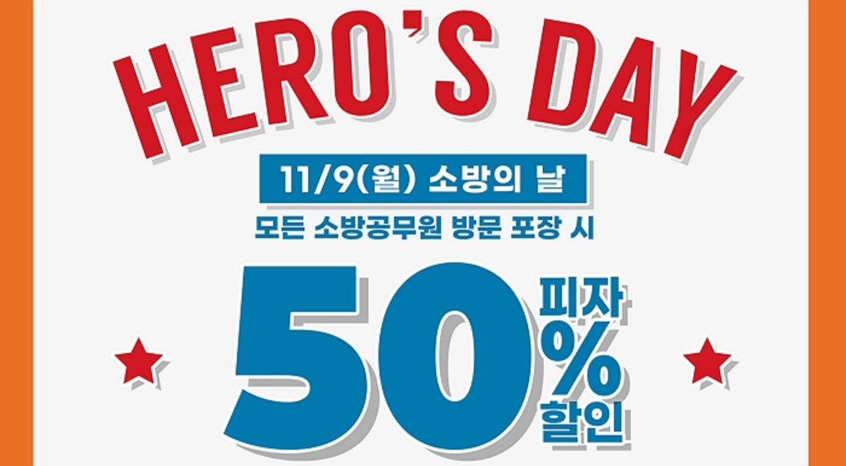 한편, 도미노피자는 2015년부터 각종 화재와 재난으로부터 국민들을 보호하기 위해 힘쓰는 소방관들에게 감사의 마음을 담아 피자를 할인하는 '히어로즈 데이'를 실시하고 있다.