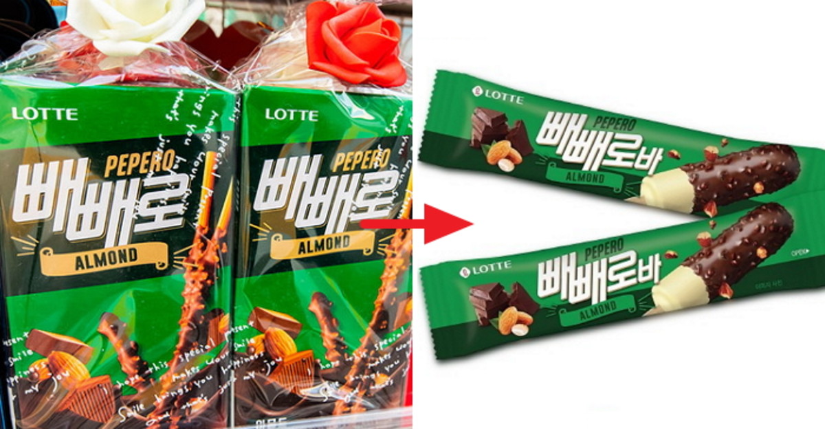 모양은 길쭉하며, 아몬드 빼빼로처럼 겉이 초콜릿과 아몬드 가루로 토핑 돼 있는 것이 특징이다.