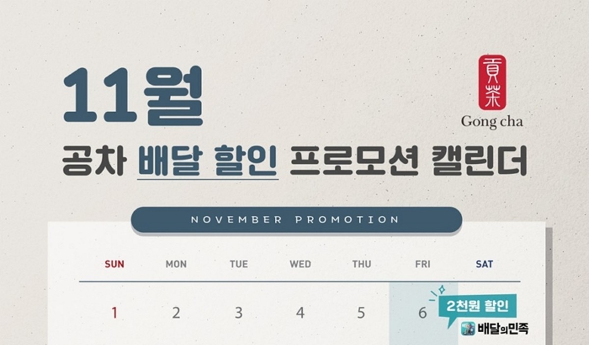 [인사이트] 천소진 기자 = 공차코리아가 10월에 이어 11월에도 한 달 내내 연속적인 배달 할인 프로모션을 이어간다고 밝혔다.