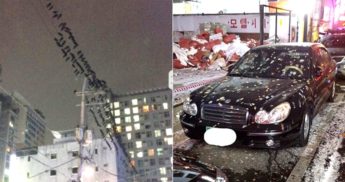 그 아래에 주차된 차는 까마귀 떼의 배설물로 인해 하얗게 뒤덮였다. 실제 SNS에서는 까마귀 떼가 나타나기 시작했다는 수원 시민들의 글을 쉽게 접할 수 있다.