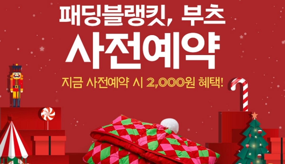 오는 11월 29일까지 해피오더를 통해 사전예약 시 1만원 이상의 제품을 구매하면, 제품 교환권과 함께 '패딩 블랭킷'과 '패딩 부츠'를 2천원 할인된 금액으로 만나볼 수 있다.