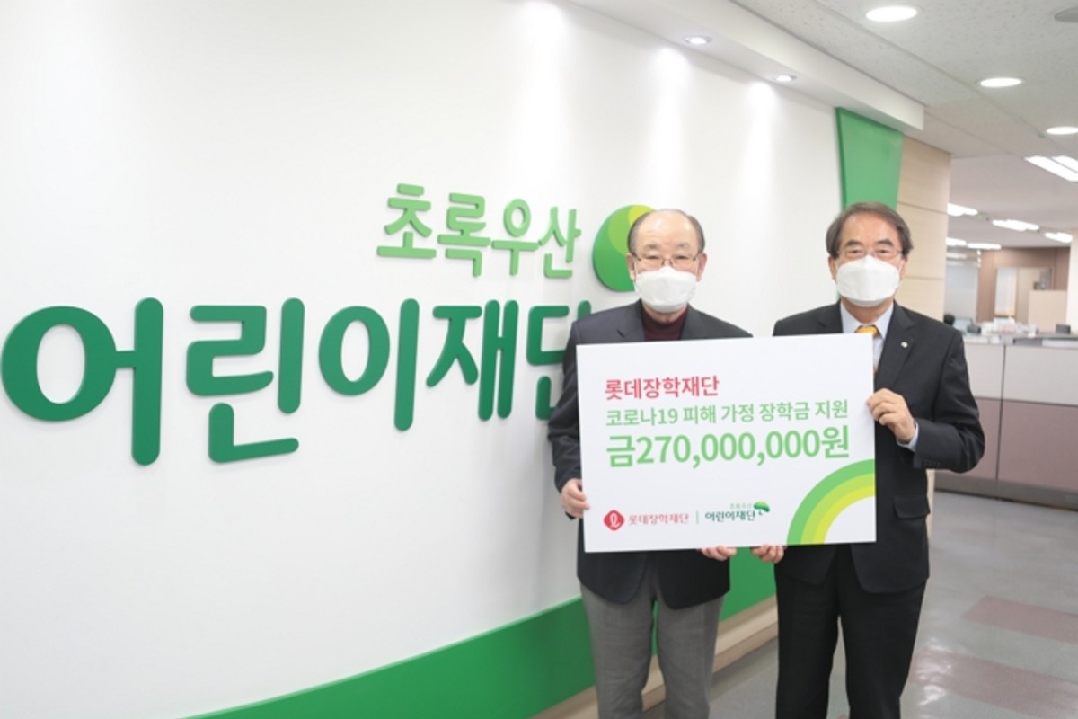 롯데장학재단은 연말을 맞아 코로나19 장기화로 인해 도움이 필요한 취약계층 아동들을 돕기 위해 2억 7,000만원의 사업비를 긴급 책정했으며, 해당 사업비는 초록우산어린이재단을 통해 코로나19로 피해를 입은 영세 자영업자, 실직자, 무급 휴직자, 저임금 노동자 등 저소득 가정 아동 500명에게 장학금으로 지원될 예정이다.