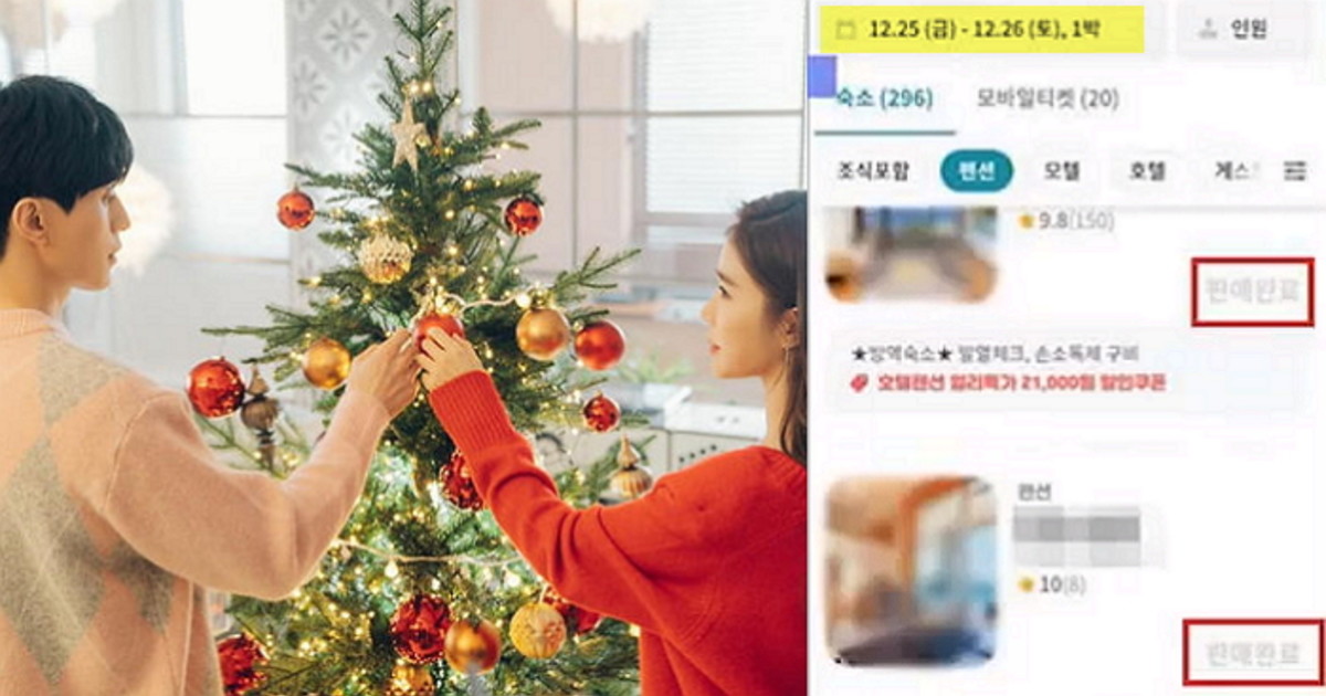 한 숙박 예약 어플을 통해 크리스마스 연휴인 25~26일을 검색하자 이미 판매가 완료됐다는 글이 올라왔다.