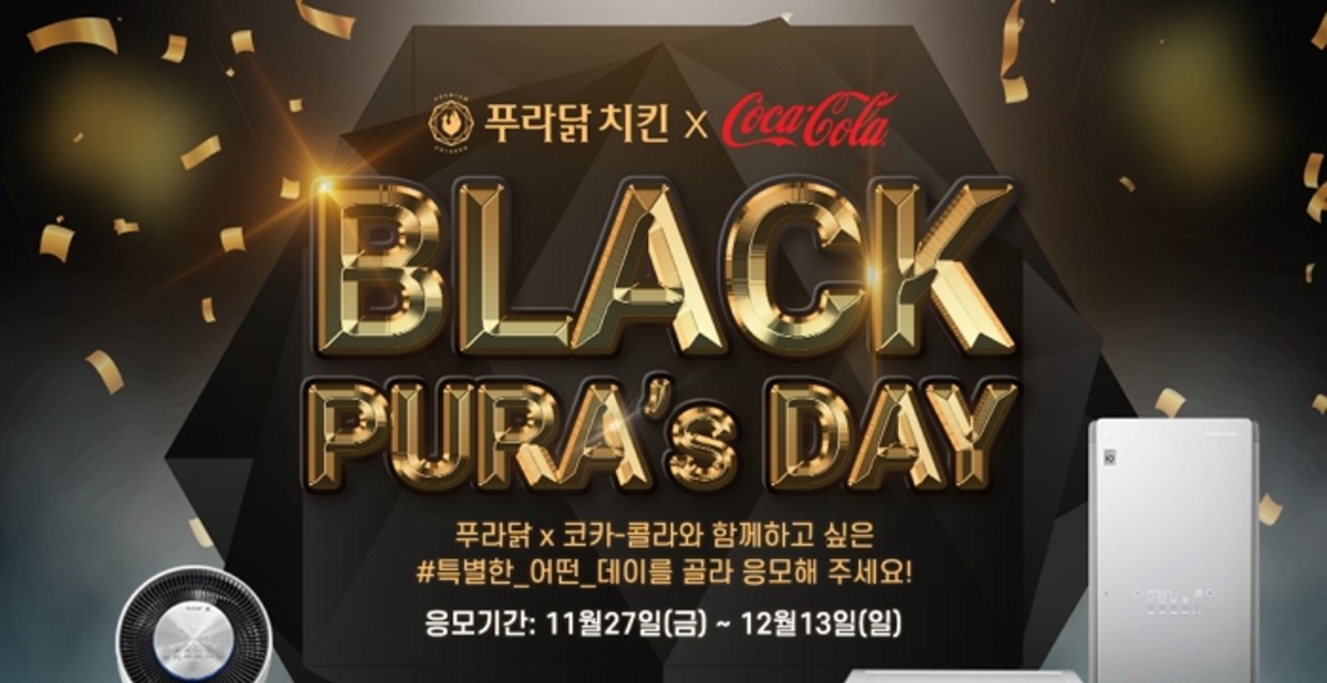 이번 이벤트는 '푸라닭, 코카-콜라와 함께하고 싶은 특별한 어떤 날'을 골라 개인 인스타그램에 인증하는 이벤트로 11월 27일 블랙프라이데이부터 진행되는 이벤트인 만큼 눈길을 끄는 대규모 경품을 내걸었다.