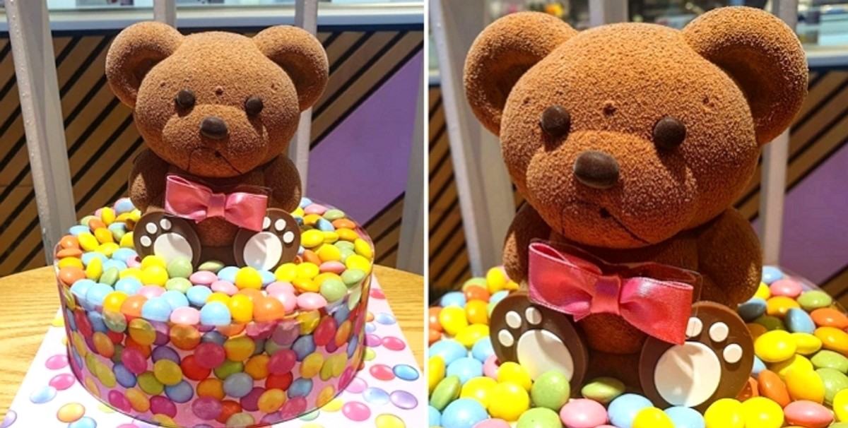 케이크 위에 얹어진 동글동글한 초코볼, 여기에 콕 박힌 귀여운 곰돌이 아이스크림 비주얼이 눈길을 사로잡는다.