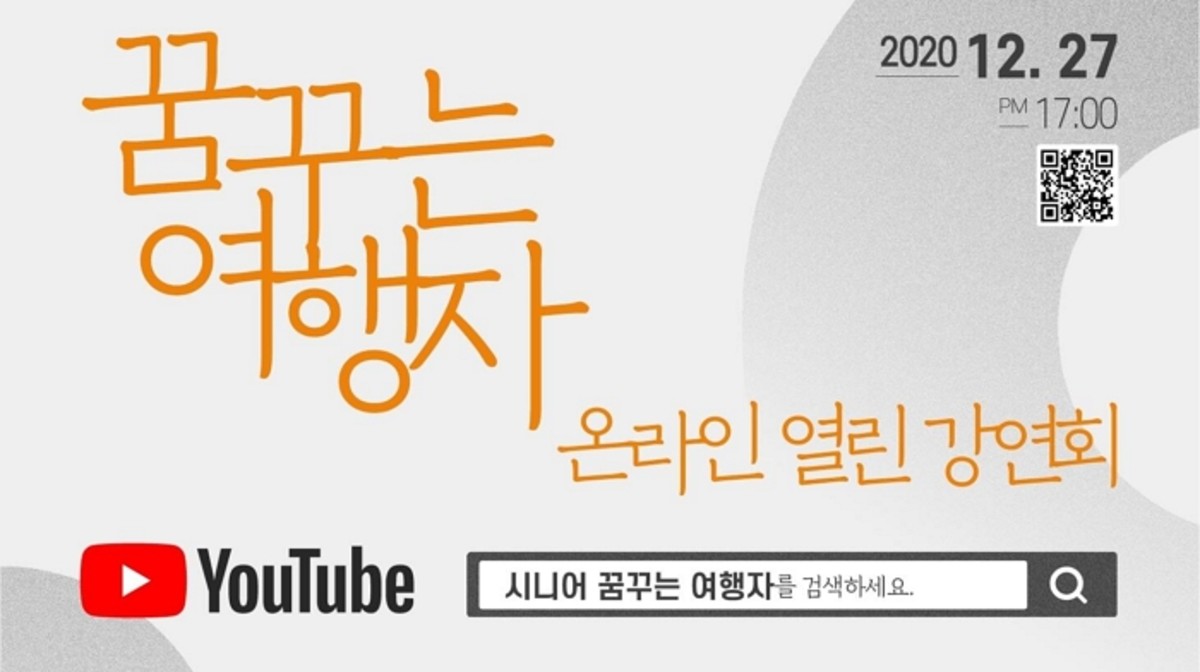 올해 열린 강연회는 코로나19의 확산에 따라 오는 27일 오후 5시부터 7시까지 유튜브 '시니어꿈꾸는여행자' 채널을 통해 온라인으로 진행된다. 별도의 나이 제한은 없으며 시니어 여행에 관심 있다면 누구나 참여 가능하다.