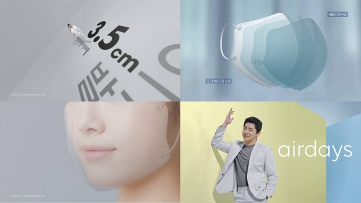 에어데이즈 CF는 '입과 마스크 사이, 숨쉬기 위한 최적의 거리 3.5cm'라는 제품의 강점을 내세우며 키 메시지인 '숨 쉬기 편한 프리미엄 마스크'를 간결하고 정확하게 담아냈다. 배우 조정석의 신뢰감 있는 발성과 위트 있는 연기력이 광고에 힘을 실었다.
