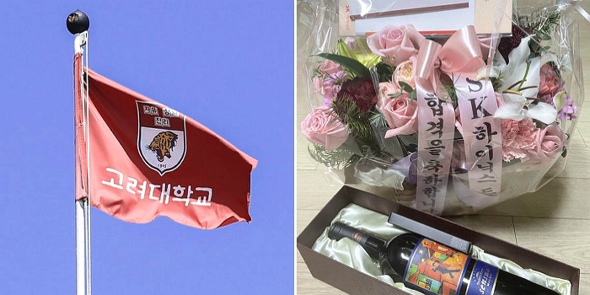 "합격을 축하합니다"라는 문구가 대문짝만하게 찍힌 SK하이닉스 명의 꽃바구니에 와인, 편지까지 풍성한 구성에 많은 이들의 관심이 쏠렸다.