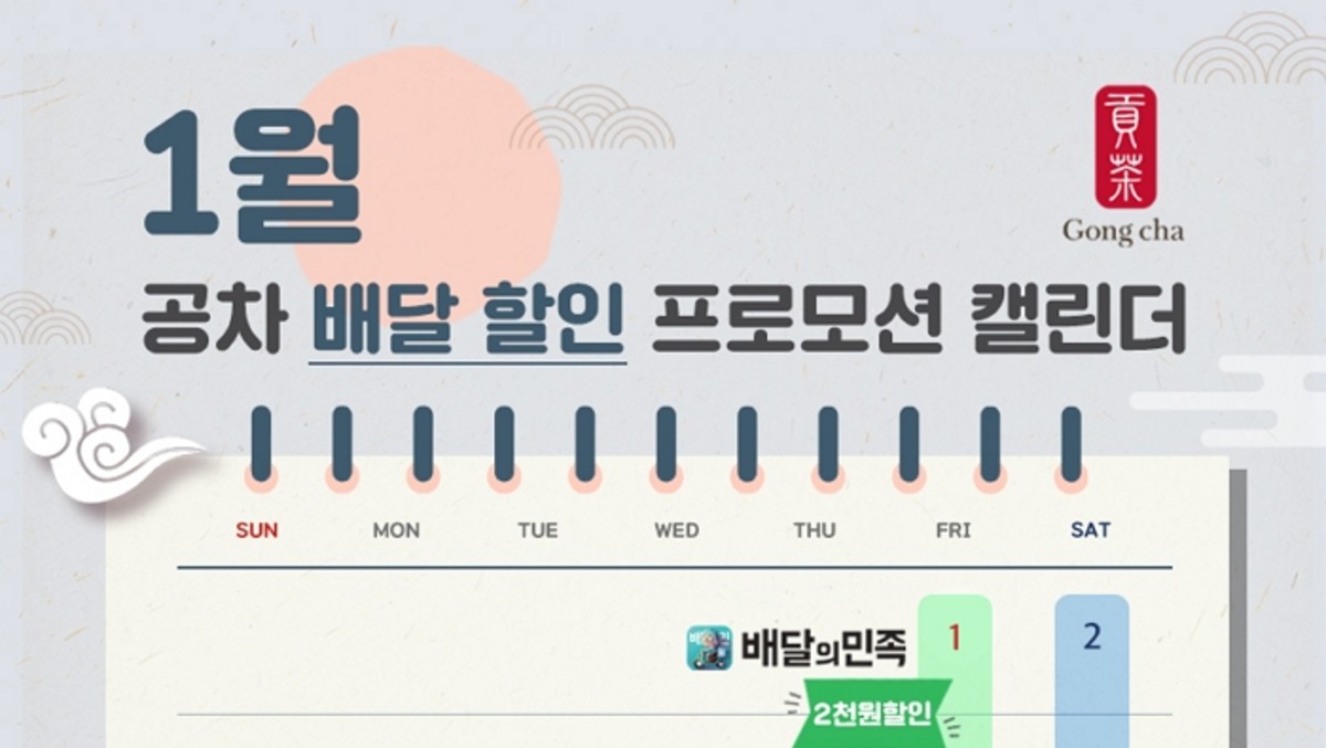 [인사이트] 김소영 기자 = 공차코리아가 새해를 맞아 고객들의 힘찬 2021년 시작을 응원하기 위해 1월 1일부터 배달 할인 프로모션을 전개한다고 밝혔다.