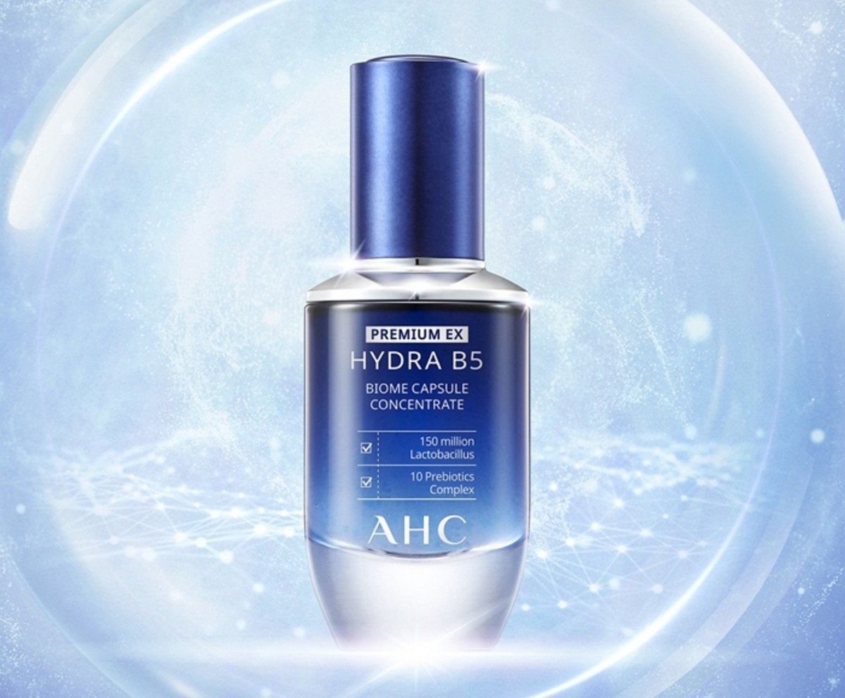 AHC '프리미엄 EX 하이드라 B5 바이옴 캡슐 컨센트레이트'는 한 방울(2ml)에 무려 1억 5천만개 순도 높은 프로바이오틱스를 함유, 프리바이오틱스와의 시너지로 건강한 피부 바탕을 만들어주는 '마이크로바이옴' 앰플이다.