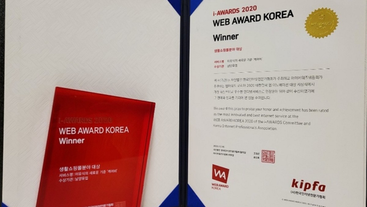 [인사이트] 김소영 기자 = 남양유업의 영양 맞춤 영유아식 브랜드 케어비가, 한국인터넷전문가협회가 주최한 웹어워드 코리아 2020에서 생활쇼핑몰 분야 대상을 수상했다고 전했다.