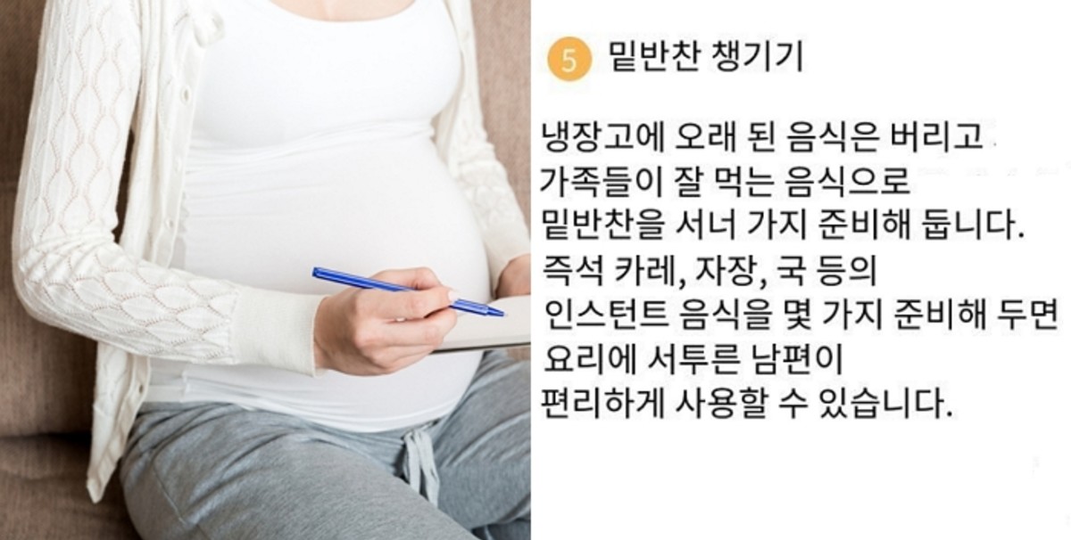 이 같은 내용과 더불어 큰 아이를 맡아줄 사람을 미리 찾으라는 내용과, 체중관리를 위해 집안일을 미루지 말라는 내용 등이 포함됐다.