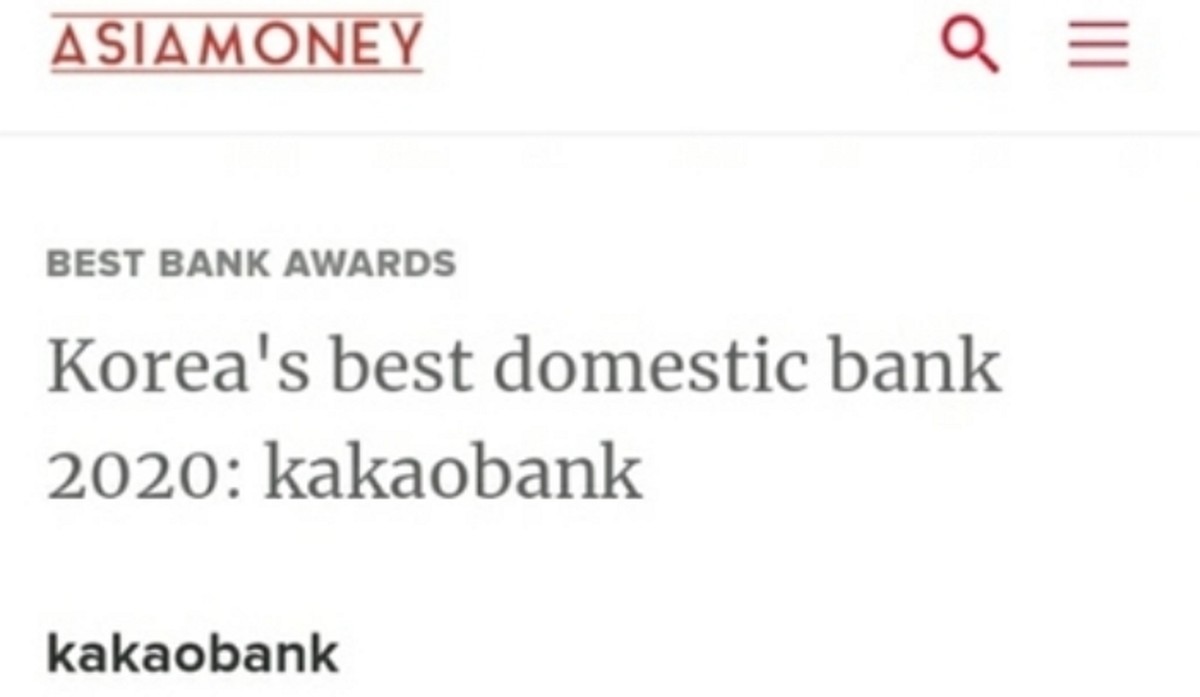 [인사이트] 전준강 기자 = 카카오뱅크는 아시아 경제전문지 아시아머니가 선정하는 '대한민국 최고 은행'으로 선정됐다고 밝혔다.