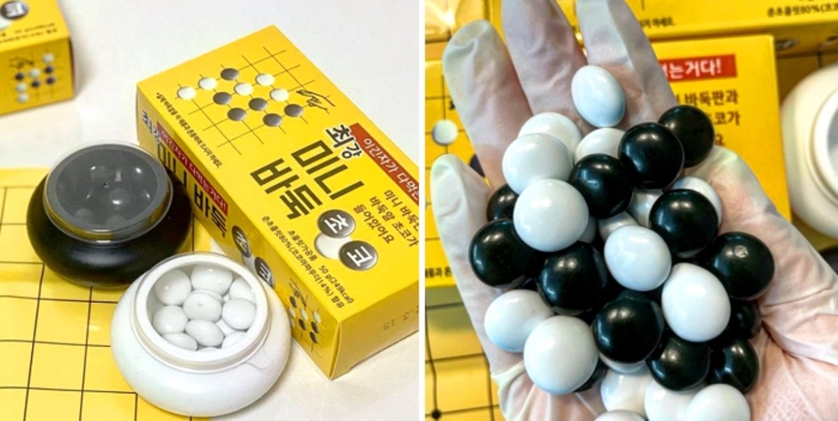 바둑알 모양을 초콜릿 원형 형태로 만든 제품 '최강미니바둑초코'는 게임도 즐기면서 달콤한 초콜릿도 함께 먹을 수 있는 '일석이조'의 간식이다.