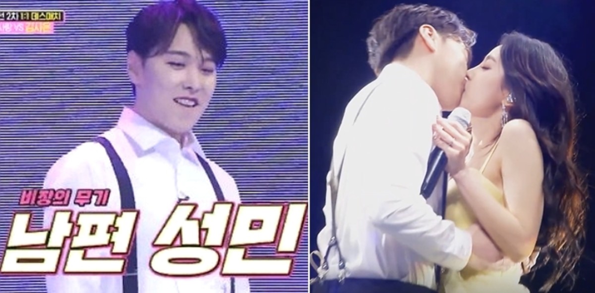 그때, 김사은의 남편, 슈퍼주니어 성민이 무대에 올라 함께 커플 댄스를 선보여 모두를 놀라게 했다. 더불어 두 사람은 무대 위에서 입을 맞추는 퍼포먼스를 선보여 놀라움을 더했다.