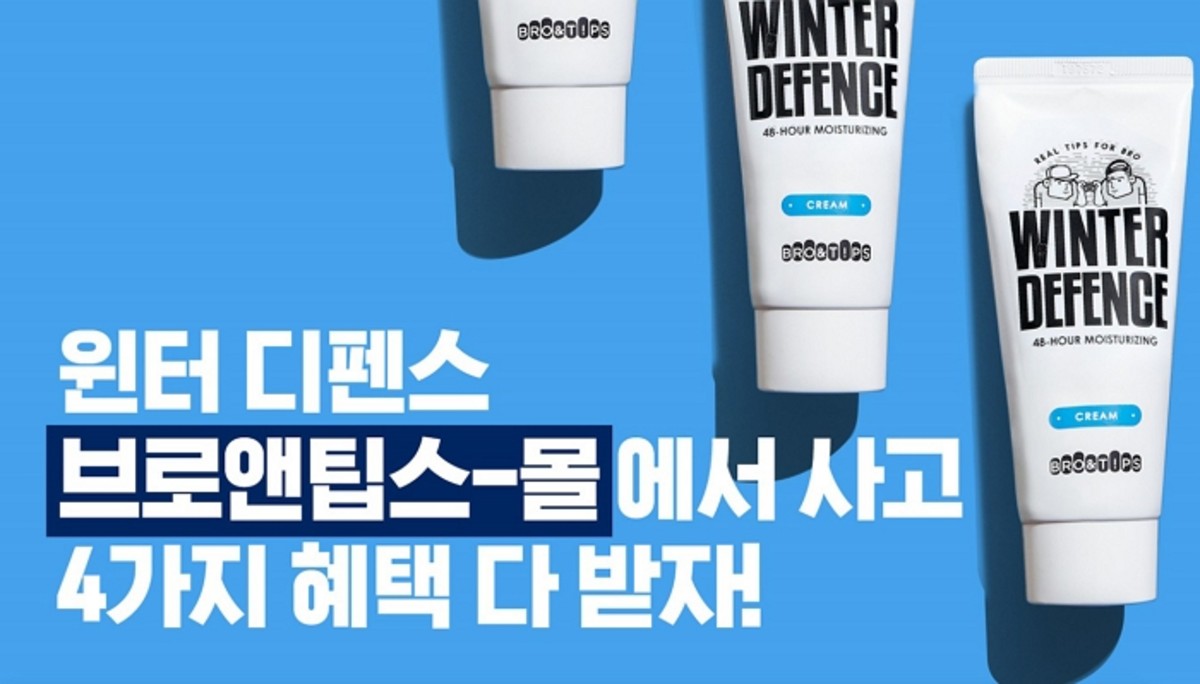 브로앤팁스는 '윈터 디펜스' 크림 출시를 기념해 '브로앤팁스-몰'에서 소비자가 가장 합리적인 가격으로 신제품을 만나는 기회를 제공하고, 남성들의 피부 고민을 해결하는데 있어서 더 쉽고 빠르게 브로앤팁스 브랜드와 제품을 경험할 수 있도록 기획됐다.