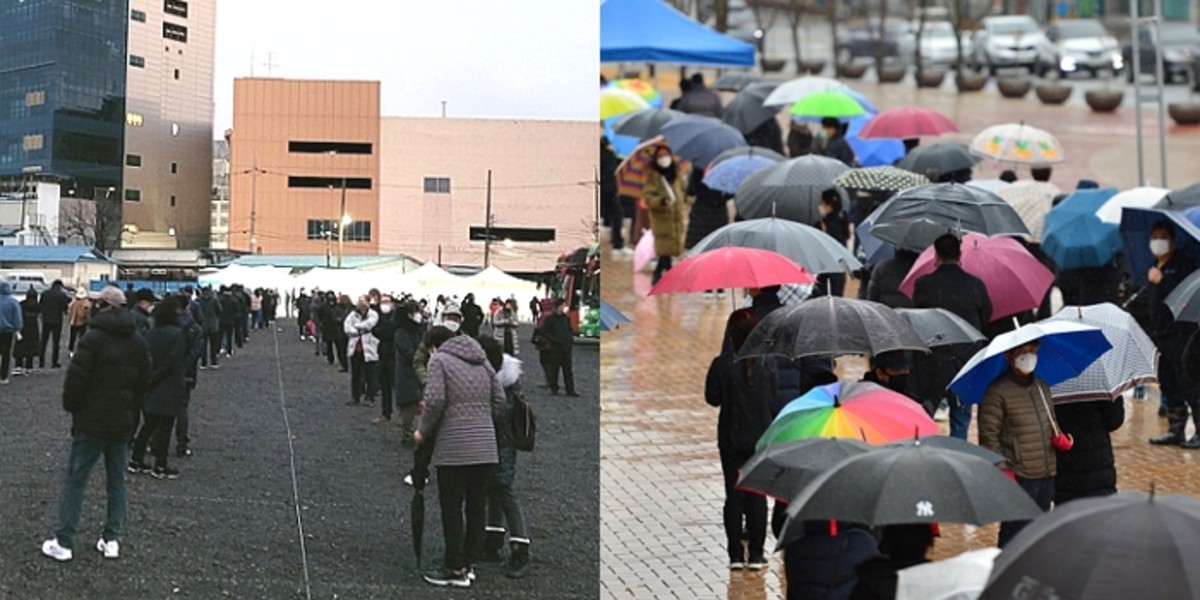 첫날부터 끝이 보이지 않는 긴 줄에 거리두기 또한 지켜지지 않았고, 비까지 내려 시민들은 빗속에서 우산을 쓴 채 2시간 이상 기다려야 했다.